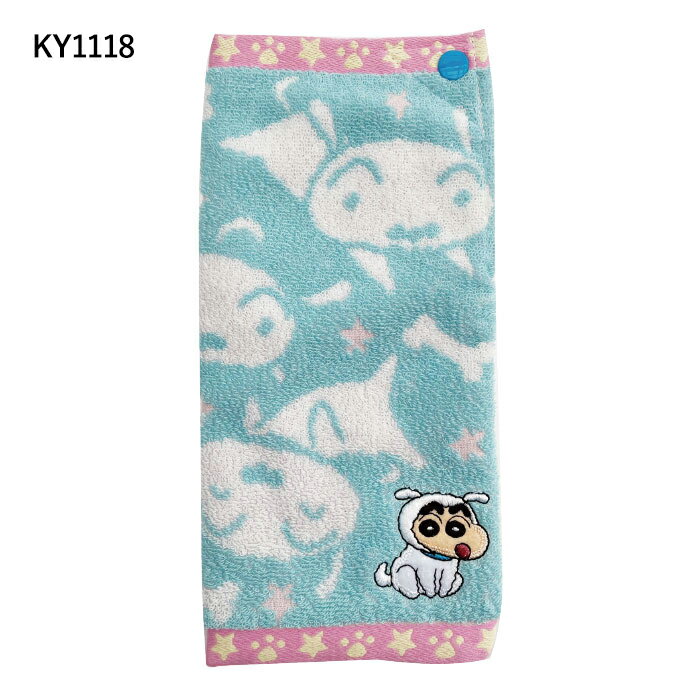 クレヨンしんちゃんから、タオルにポケットが付いたロングポシェチーフが入荷! ポケット部分は500mlのペットボトルが1本入るサイズです。