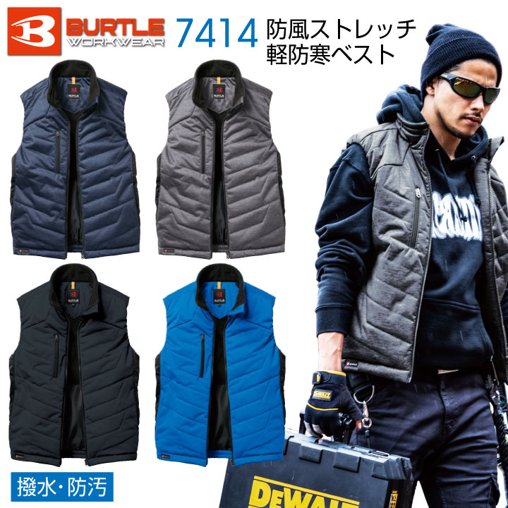BURTLE バートル 防寒着 7414 防風 ストレッチ 軽防寒 ベスト 秋冬 SS 〜 3L | アウター 上着 軽量 防風 保温 撥水 ニット 黒 青 グレー 小さいサイズ SS S M L LL 3L