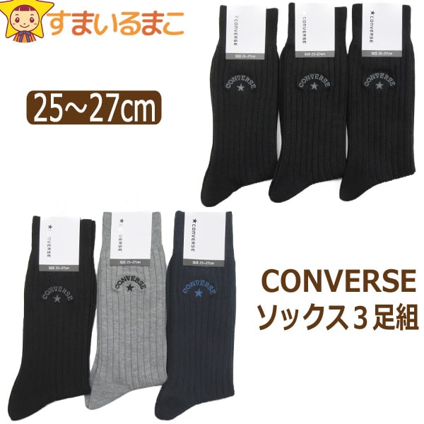 靴下 メンズ CONVERSE コンバース リブ ロゴ刺繍入り クルー丈ソックス 3足組 25〜27cm 黒 3色 set1014 ネコポス便は送料無料♪ 男性 紳士 ソックス くつした くつ下 靴下 セット クルー丈 足 父の日 敬老の日