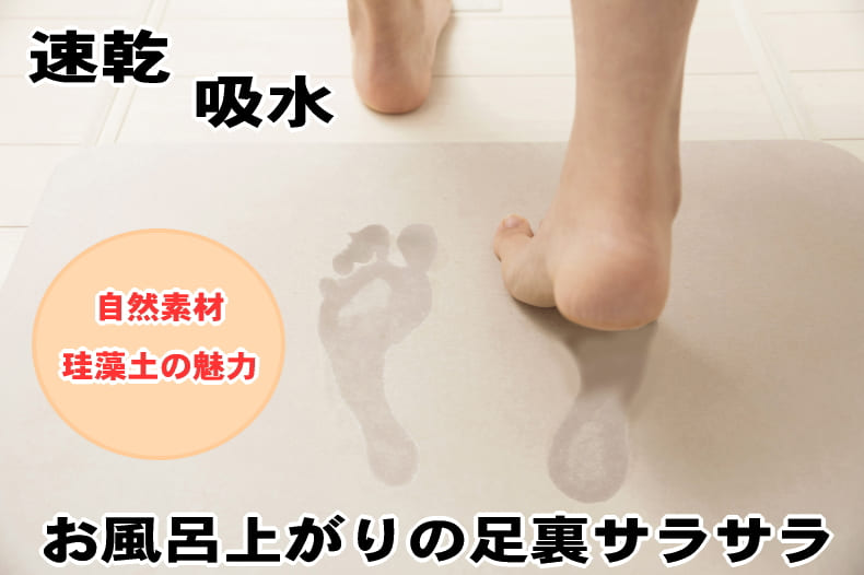 ●濡れた素足のまま珪藻土バスマットに直接乗ってご使用ください。