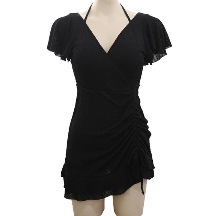 上品な可愛いらしさとセクシーな雰囲気を合わせた大人可愛い水着ですカシュクールの胸元が印象的でシンプルだけどオシャレな露出控えめのワンピスタイル。