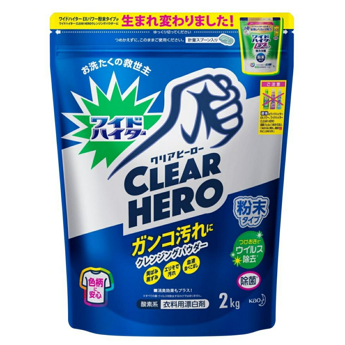 商品情報商品名ワイドハイタークリアヒーロー 衣類用漂白剤 粉末 2kg品名衣類用漂白剤ブランド花王商品タイプ粉末タイプ液性弱アルカリ性成分過炭酸ナトリウム(酸素系)、界面活性剤(ポリオキシエチレンアルキルエーテル)、アルカリ剤(炭酸塩)、漂白活性化剤、安定化剤、酵素粒状正味量2kg香りホワイトフローラルの香り【送料無料】ワイドハイタークリアヒーロー 衣類用漂白剤 粉末 2kg ガンコ汚れ シミ 除菌 漂白 消臭 黒ずみ ワイドハイター クリア ヒーロー 臭い ウイルス 除去 漂白剤 つけおき 黄ばみ コストコ Costco ※楽天倉庫出荷 日々の洗濯にプラス!つけおき洗いでしっかり!洗剤だけでは落としきれないガンコ汚れ・菌までスッキリ! クリアヒーロー クレンジングパウダーを洗剤にプラスするだけ!洗剤だけでは落としきれない、 黄ばみ・黒ずみ、エリそで汚れ、血液、食べこぼしなどのしみこんだガンコ汚れ、そして菌を撃退!※。